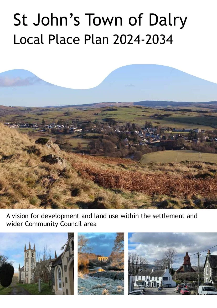 The Dalry Local Place Plan has been drawn up on behalf of Dalry Community Council, based on information gathered at a range of community engagement events and sessions held between August 2023 and May 2024 at which residents, local business owners and stakeholders have been invited to take part. The document aims to articulate the community's wishes for future development of the settlement and wider area, including the retention and improvement of existing facilities, housing and services, and views on land use.